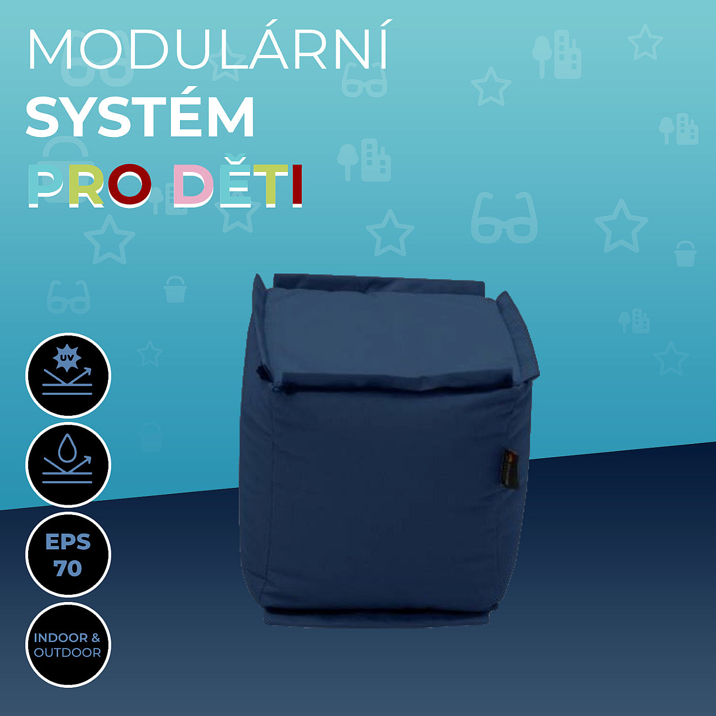 DEOKORK Záhradný detský textilný stolík/taburet MODULTEX KIDS (tmavo modrá)