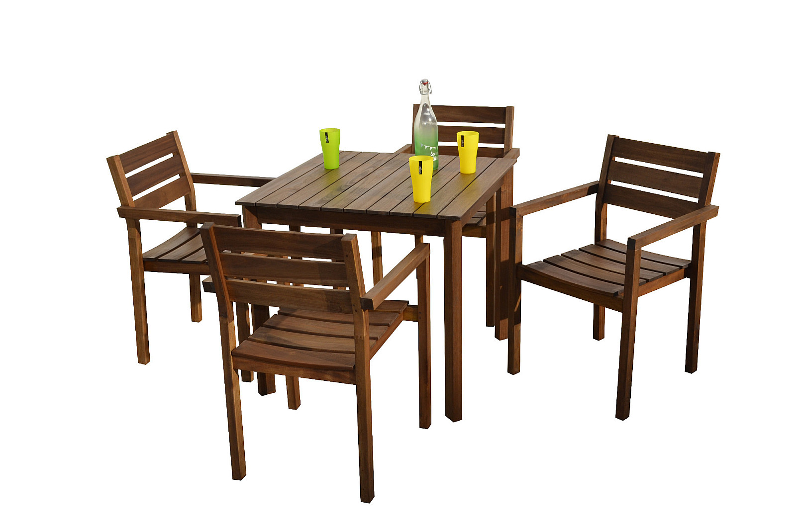 Sestava obsahuje: 4x Záhradné kreslo stohovateľné SCOTT (hnedá), 1x Záhradný stôl SCOTT 80×80 cm (hnedý)