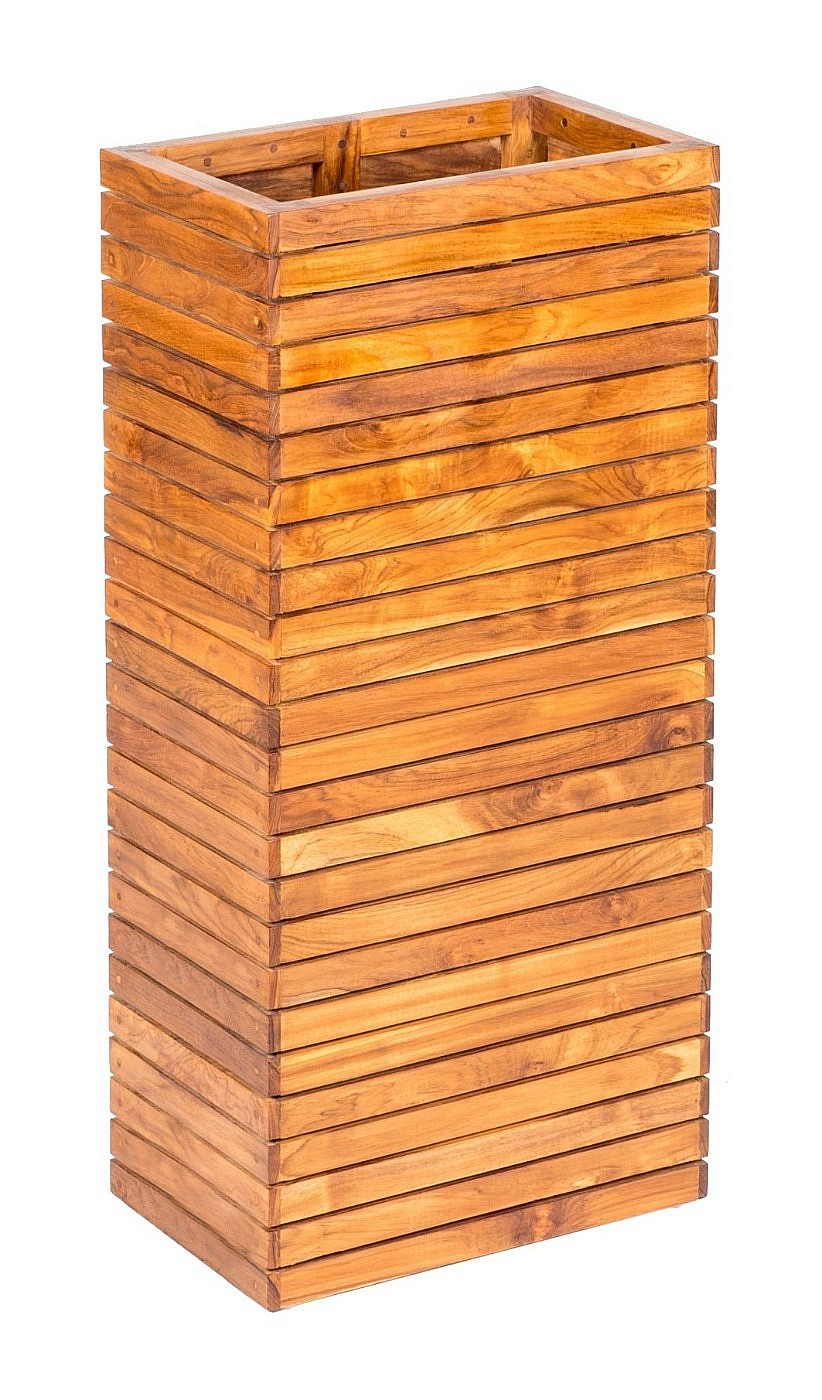 Drevený kvetináč UNICO IV vyrobený z kvalitného indonézskeho teaku. Starostlivá remeselná práca. Veľmi odolný voči vonkajším vplyvom ako je dážď alebo slnko. Ak Vám tento rozmer nevyhovuje, v našej ponuke nájdete aj iné rozmery. Ošetrený teakovým olejom.