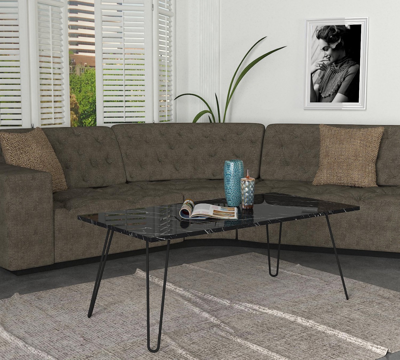 DEREK konferenčný stolík, metal / čierny mramor
