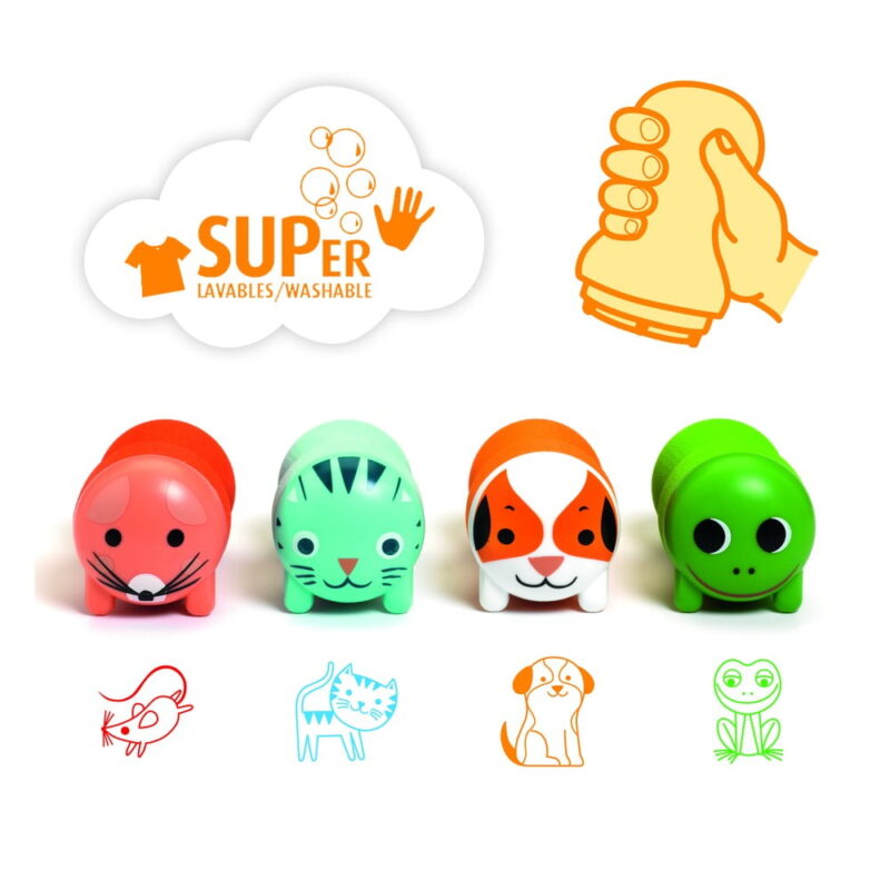 Táto štvordielna súprava pečiatok od značky Djeco nielen napomáha tým najmenším s rozvojom jemnej motoriky, ale zároveň spestrí ich farebné výtvory. Vďaka ergonomickej penovej rukoväti sa veľmi dobre drží aj tým najmenším rukám. Atrament je navyše prateľný a umývateľný, a preto ani bez dozoru nedôjde k zničeniu nábytku či oblečenia. Dobré vedieť: veľkosť pečiatky je 4 x 8 cm.