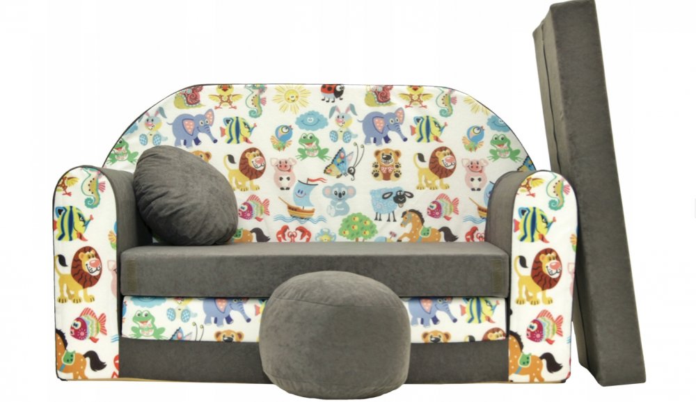 Detská pohovka je vyrobená z polyuretánovej peny, vďaka čomu je ľahká a bezpečná. Veselé farby a motívy dodajú detskej izbe skvelú atmosféru. Veľký komfort poskytujú penové matrace všité v špeciálnych vreckách. Ozdobené jemným velúrom v mnohých farebných variantoch, ideálne na spanie, hranie či leňošenie. Celý poťah je možné sňať a prať v práčke na 30°C, vďaka čomu sa ľahko udržiava v čistote. Sedačka je ľahká, dieťa ju podľa potreby môže posúvať, presúvať, skladať a rozkladať. Neobsahuje žiadne stužujúce prvky (kovové, drevené, plastové), vďaka čomu je 100% bezpečná. Všetky použité materiály majú príslušné certifikáty.