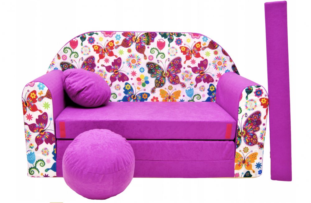 Detská pohovka je vyrobená z polyuretánovej peny, vďaka čomu je ľahká a bezpečná. Veselé farby a motívy dodajú detskej izbe skvelú atmosféru. Veľký komfort poskytujú penové matrace všité v špeciálnych vreckách. Ozdobené jemným velúrom v mnohých farebných variantoch, ideálne na spanie, hranie či leňošenie. Celý poťah je možné sňať a prať v práčke na 30°C, vďaka čomu sa ľahko udržiava v čistote. Sedačka je ľahká, dieťa ju podľa potreby môže posúvať, presúvať, skladať a rozkladať. Neobsahuje žiadne stužujúce prvky (kovové, drevené, plastové), vďaka čomu je 100% bezpečná. Všetky použité materiály majú príslušné certifikáty.