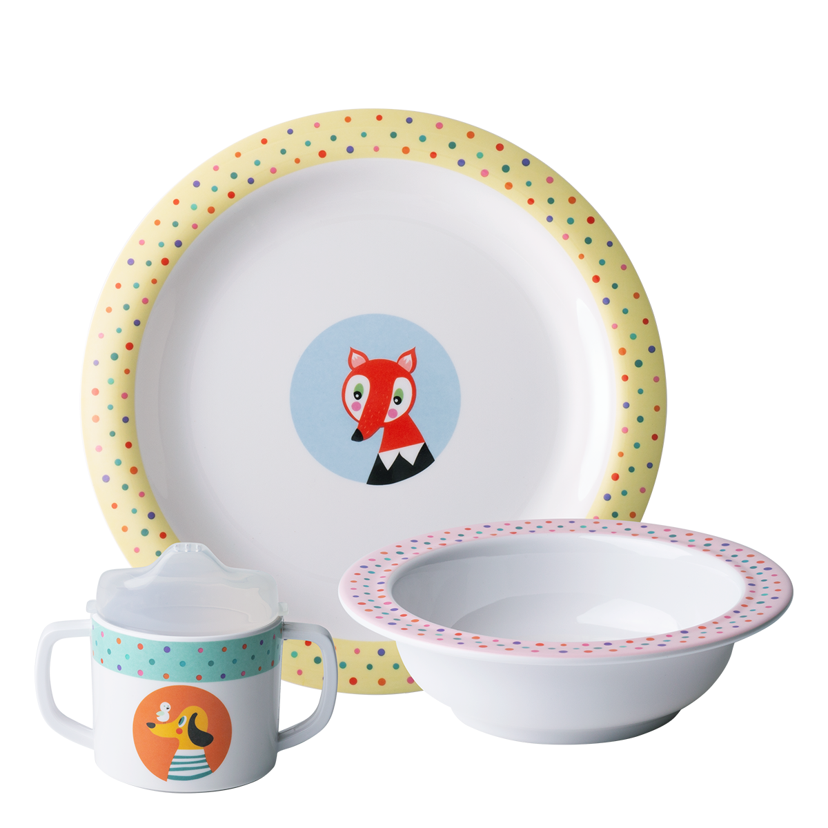 Detský set prinesie jedinečné zážitky zo stolovania aj najmenším členom rodiny. Farebné obrázky zvierat ich zabavia počas čakania na jedlo a vy ho tak budete môcť bezstarostne servírovať. Set obsahuje: 1x tanier hlboký 1x tanier plytký 1x šálka