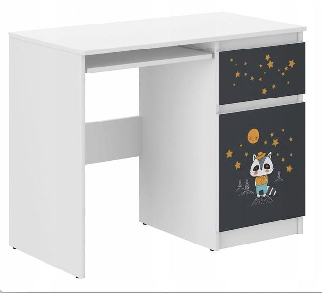 Písací stôl je vyrobený z bielej drevotriesky, povrchovo upravený dyhou. Má jednu funkčnú zásuvku a skrinku s dvomi policami. Predná strana písacieho stola má farebnú potlač, ktorá má pekné živé farby a je zabezpečená špeciálnym laminátom proti vyblednutiu či odretiu. Môžete ho vyčistiť vlhkou handričkou.