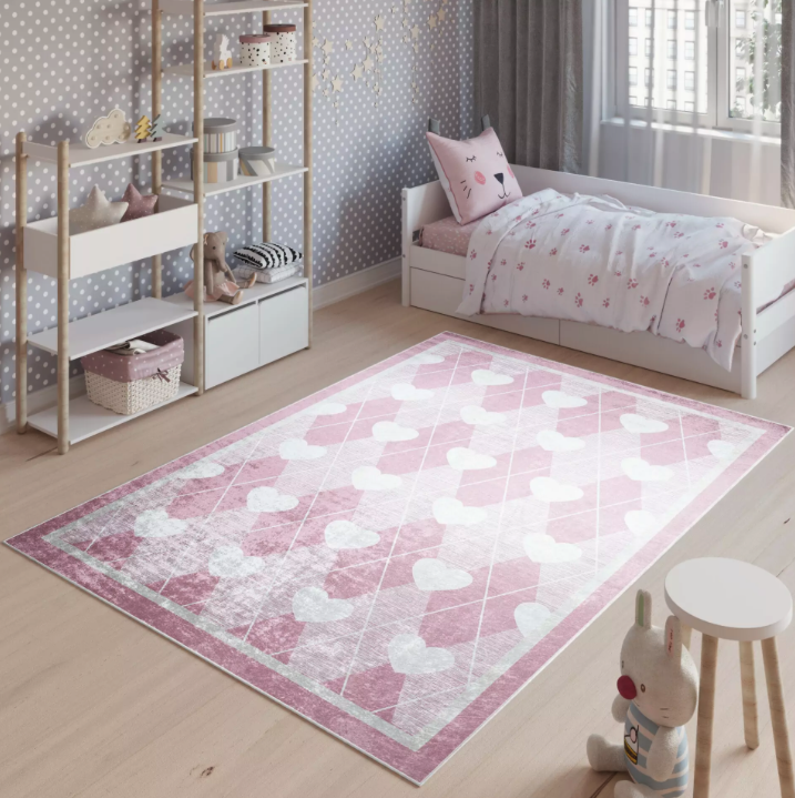 Detský ružový koberec s motívom srdiečok Šírka: 120 cm | Dĺžka: 170 cm