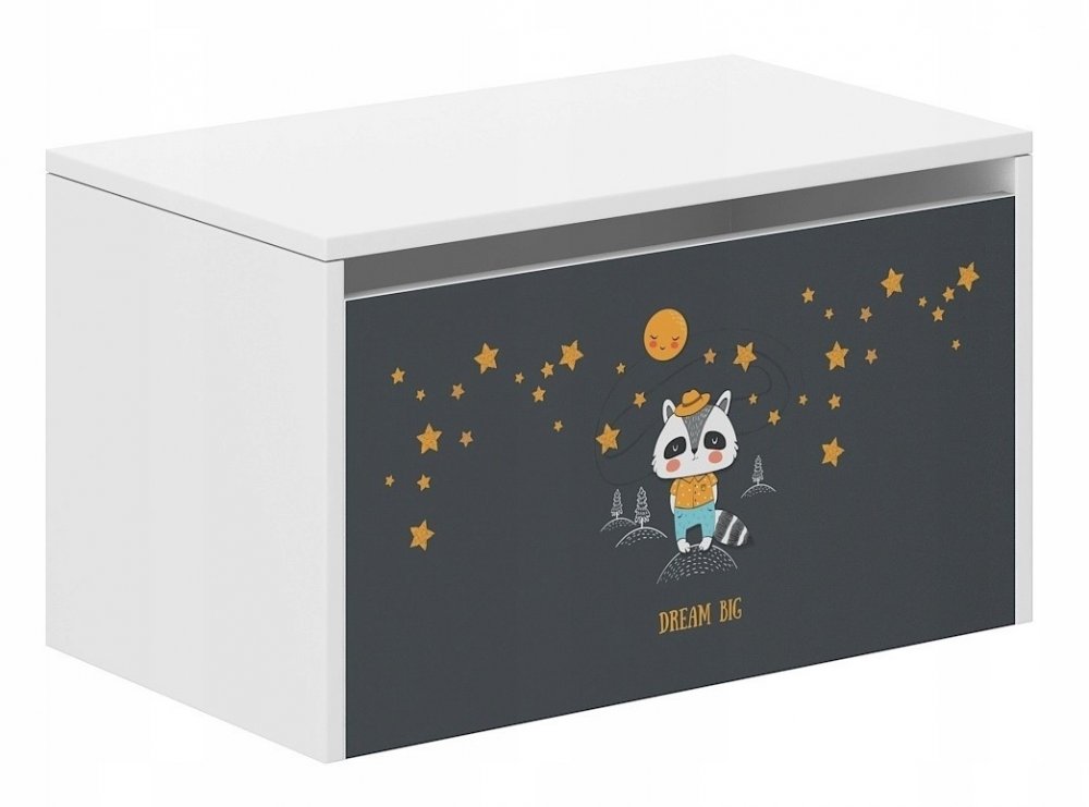 Úložný box alebo truhlica je vyrobený z bielej drevotriesky, povrchovo upravený dyhou. Predná strana boxu má farebnú potlač, ktorá má pekné živé farby a je chránená špeciálnym laminátom, aby nevybledla a neopotrebovala sa. Môžno ho vyčistiť vlhkou handričkou.