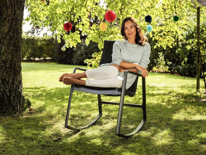 Domovská stránka » Katalóg » Diamond húpacie záhradné kreslo s teakovými podrúčkami antracitové
