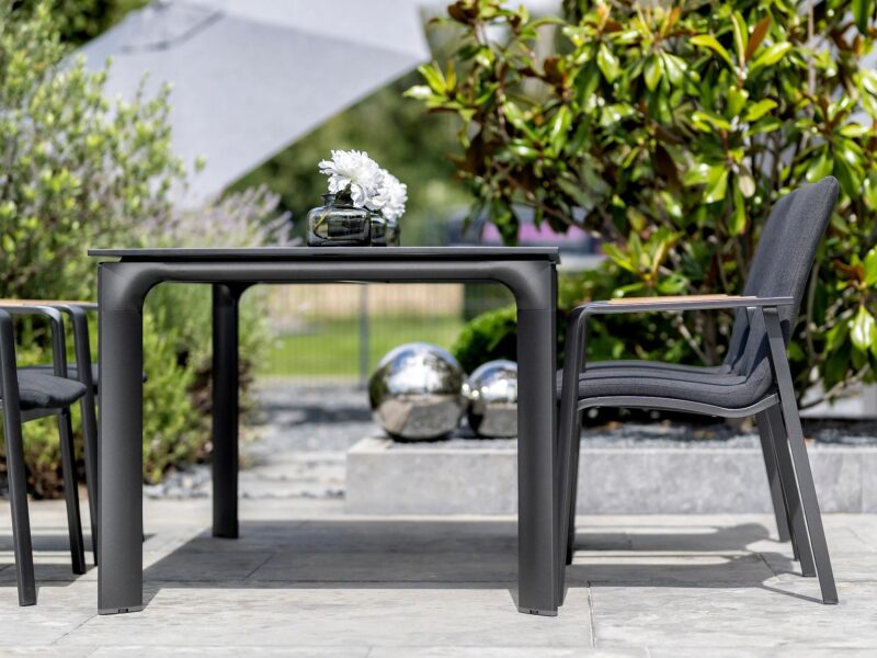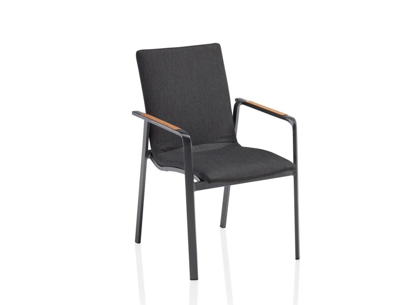 Štýlová záhradná jedálenská stolička Diamond s elegantnými podrúčkami z FSC®-certifikovaného teakového dreva spája nadčasový dizajn a mimoriadnu odolnosť. Vychutnajte si štýlový a pohodlný zážitok na stoličke, ktorá je rovnako elegantná ako praktická, ideálna pre vašu záhradu.