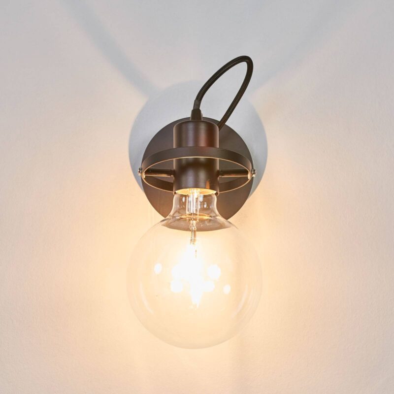 Čierna dizajnová nástenná lampa Rádio v minimalistickom vzhľade Táto dizajnová nástenná lampa sa opticky veľmi pohráva práve so žiarovkou a stavia ju do centra pozornosti. Nie je tu žiadne tienidlo ani nič podobné. Len objímka a nástenný držiak. Obe sú pri tejto dizajnovej nástennej lampe čierne. Práve žiarovka (bez svetelnej regulácie), v tvare gule, ktorá je súčasťou dodávky, robí pri tomto nástennom svietidle skutočný dojem.