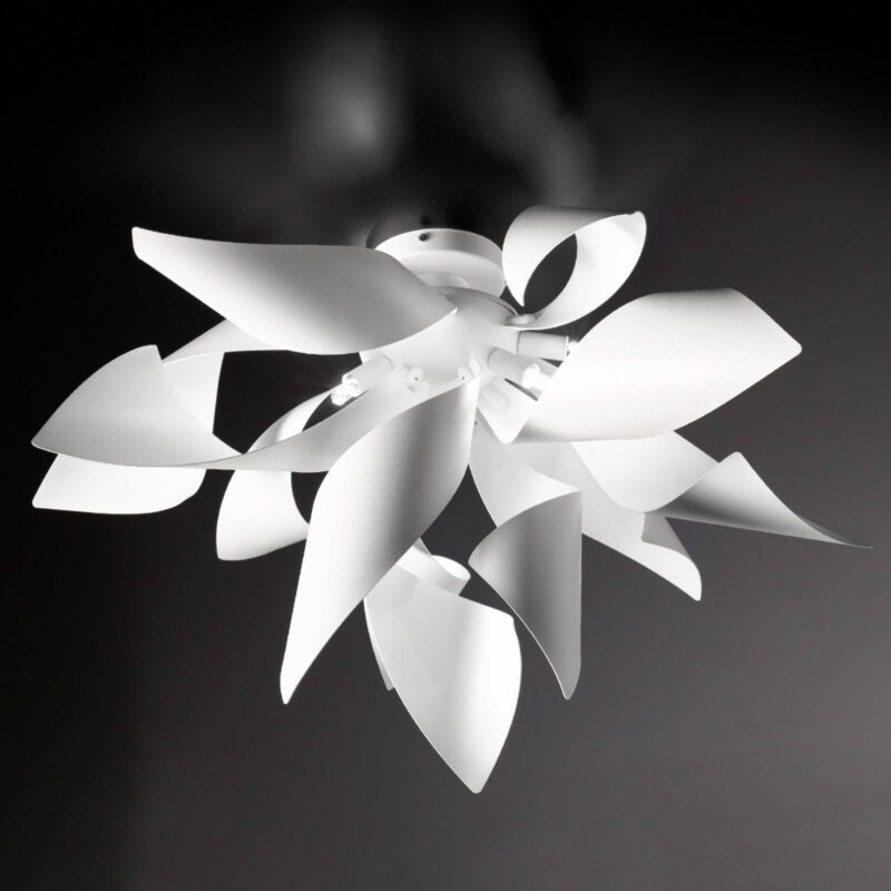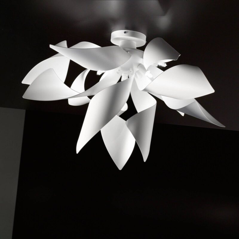 Dômyselné dizajnové stropné svietidlo Ginger z bieleho kovu Jednotlivé prvky stropného svietidla Ginger, ktoré sú tak šikovne zakrivené okolo pologule vo vnútri konštrukcie, sú celé vyrobené z bieleho lakovaného kovu. Vďaka mnohým kovovým prvkom malé halogénové žiarovky zaujímavým spôsobom šíria svoje svetlo po miestnosti. Stropné svietidlo Ginger nie je len osvetľovacím prvkom, ktorý poskytuje dobré všeobecné osvetlenie, ale aj kusom nábytku, ktorý zvýrazňuje obytný priestor aj bez osvetlenia.