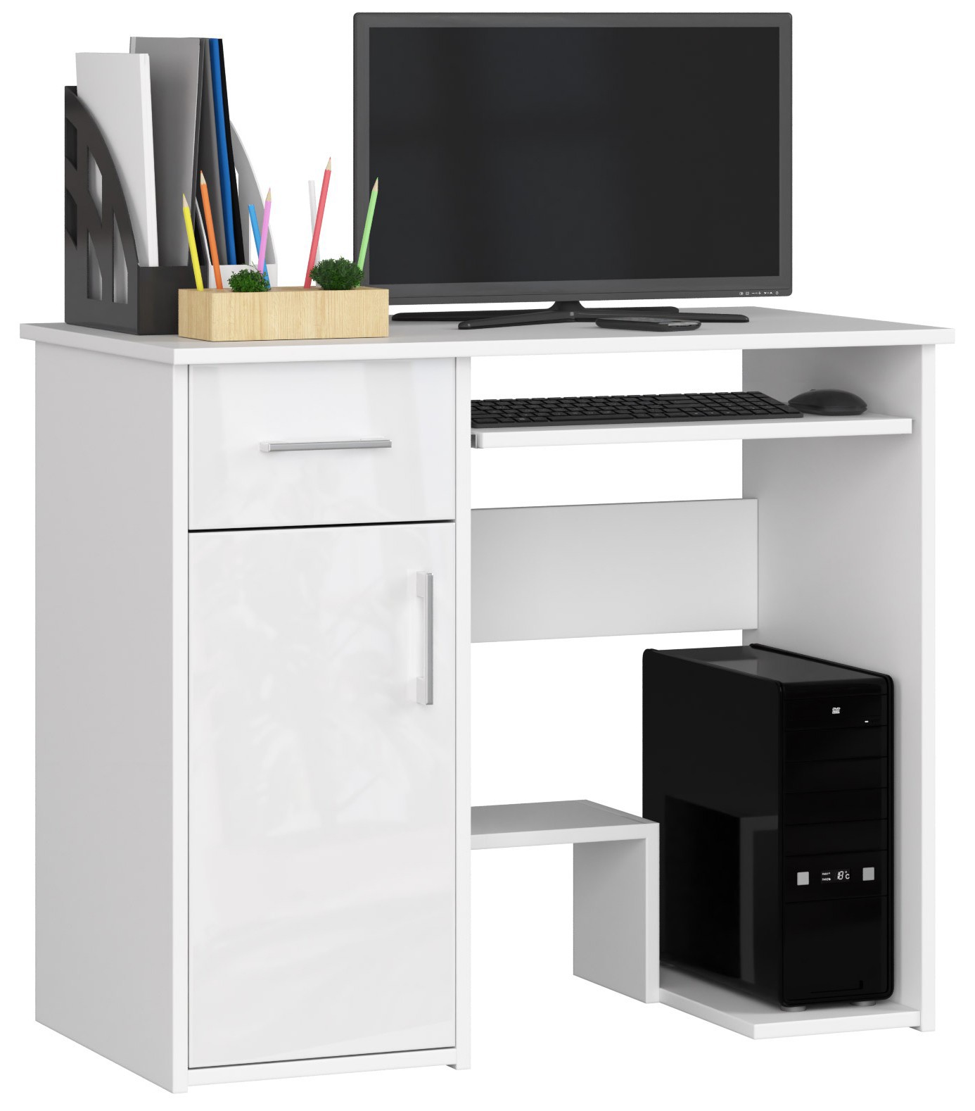 Lesklý písací stôl JANČA90: Moderná elegancia pre každý interiér JANČA90 je synonymom pre moderný dizajn a funkčnosť. Tento písací stôl s lesklým dokončením prináša sviežosť a štýl do každej detskej izby, kancelárie alebo pracovne. Materiál: LTD – odolný materiál na dlhodobé využitie. Rozmery: 74 x 90 x 50 cm – ideálna veľkosť pre pohodlnú prácu aj štúdium. Farba: Biely lesk – elegantná a ľahko kombinovateľná . Vybavenie: 1 zásuvka na uskladnenie potrieb a výsuvná doska pre klávesnicu zvyšujú komfort práce. Štýl: Moderné, dizajnové prevedenie s lesklým dekorom. Počet políc: 3 – skvelá pre uskladnenie kníh, dokumentov a ďalších potrieb. JANČA90< /strong> ponúka kombináciu elegancie a praktickosti. Lesklý povrch dodáva stolu charakter a robí ho skvelým doplnkom do akéhokoľvek moderného interiéru. Urobte zo svojho pracoviska miesto, kde sa design snúbi s funkcionalitou!