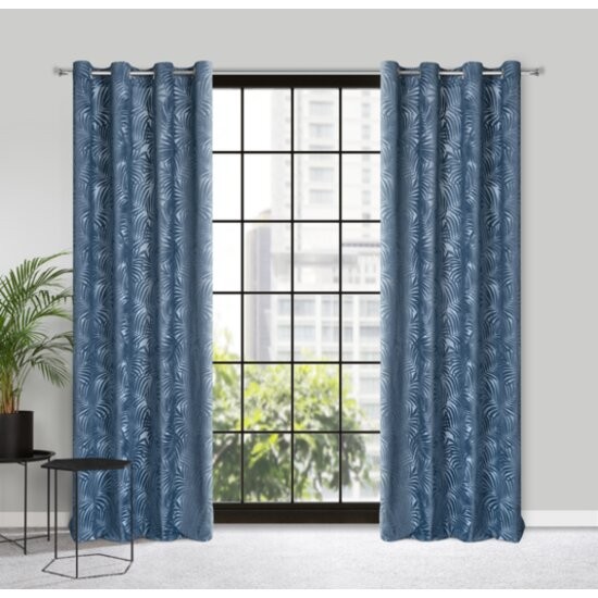 Dizajnový záves tmavomodrej farby s prírodným motívom na kruhy 140 x 250 cm
