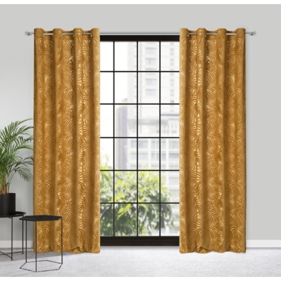 Dizajnový záves zlatej farby s prírodným motívom na kruhy 140 x 250 cm
