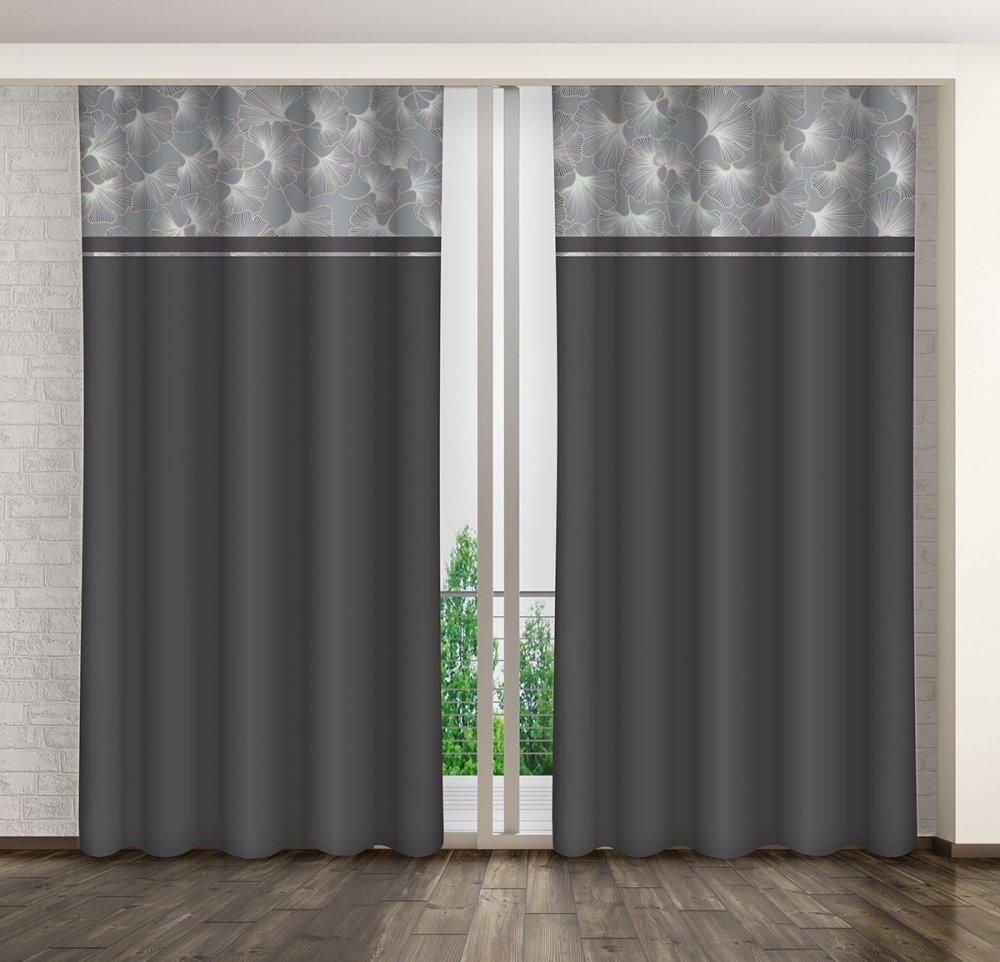 Dlhé čierno-šedé závesy so vzorom listov v elegantnom štýle Dĺžka: 250 cm