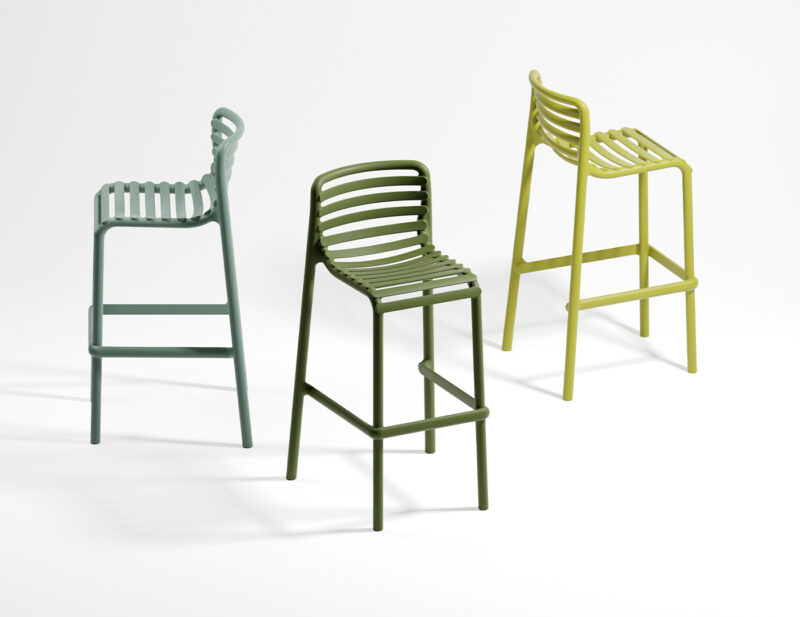 Doga barová stolička prináša moderný dizajn s ľahkou konštrukciou a elegantným lamelovým vzhľadom. Vďaka recyklovateľnému polypropylénu s UV ochranou je ideálna na vonkajšie použitie.