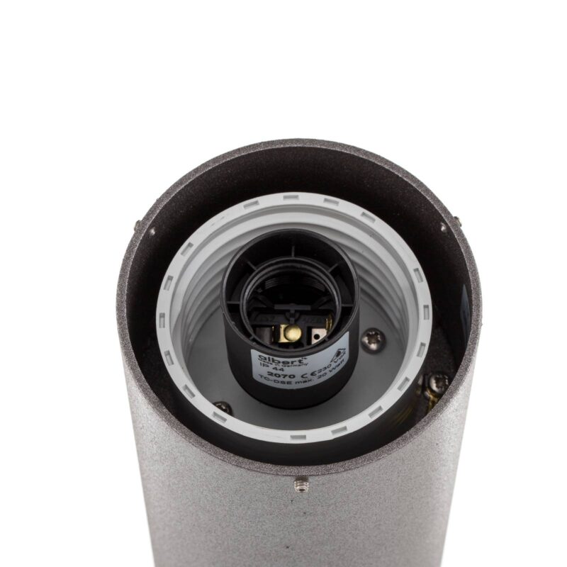 Užitočné stĺpové svetlo Elvio s praktickým detektorom pohybu Osvetlenie stĺpika Elvio je vysoké 90 cm a zaujme elegantným valcovitým tvarom. Kryt svietidla z nehrdzavejúcej ocele je v antracitovej farbe. Hlava žiarovky sa skladá z vonkajšieho plášťa z akrylového skla. Vo vnútri sa nachádza difúzor vyrobený z bieleho opálového skla. Tak vznikne nádherné okolité osvetlenie bez oslnenia. Elvio je praktické svietidlo na prístupových cestách alebo pozemkoch. Môže byť namontovaný na základ alebo postavený na nespevnenom podklade so základňou (pozri príslušenstvo). Integrovaný detektor pohybu zvyšuje bezpečnosť. Jas je možné regulovať pomocou potenciometra. Rozsah nastavenia je minimálne 2 a maximálne 1 000 luxov. Čas zapnutia je možné zvoliť medzi 5 sekundami a 20 minútami. Senzor s dosahom 12 m má detekčný uhol 110 °. K dispozícii je ochrana proti plazeniu. Elvio je nemecký svetelný produkt. Vybrané materiály a robustná životnosť sú rozhodujúce vlastnosti tejto kvalitnej žiarovky.