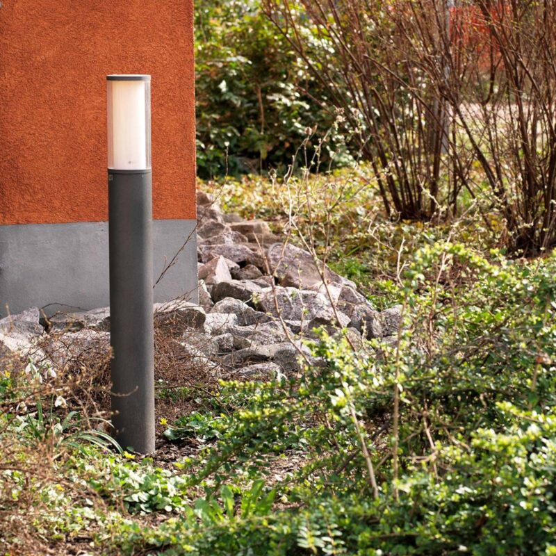 Praktické stĺpikové svetlo Elvio vyrobené z nehrdzavejúcej ocele v tvare valca v antracitovej farbe 90 cm vysoké stĺpové svietidlo Elvio má elegantný tvar valca. Teleso svietidla je vyrobené z nehrdzavejúcej ocele a natreté matným antracitom. Hlava žiarovky má vonkajší kryt z akrylového skla. Vo vnútri je biely difúzor vyrobený z opticky príjemného opálového skla. Sklo zaisťuje okolité osvetlenie bez oslnenia. Elvio je možné umiestniť vedľa príjazdových ciest a pozemných komunikácií. Za týmto účelom je možné ho namontovať na pevný základ. Môže sa postaviť na nespevnené cesty pomocou základne (k dispozícii ako príslušenstvo). Svietidlo je produkt nemeckého výrobcu. Vybrané materiály a robustná životnosť sú rozhodujúce vlastnosti tejto kvalitnej žiarovky.
