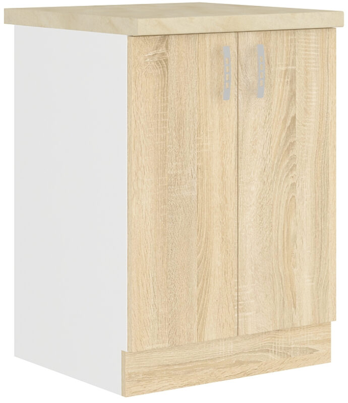 Dolná skrinka SARIA patrí ku komponentom kuchyne SARA, vďaka ktorým si môžete poskladať kuchyňu podľa vašich predstáv. Poteší vás jej výborná cena.Je vyrobená z kvalitných LTD dosiek vo farebnom prevedení DUB SONOMA. Korpus skrinky je v bielej farbe. Pracovná doska nie je súčasťou. Skrinka je dvojdverová. Úchyty dvierok sú vyrobené z odolného plastu.Kuchyňa SARA poteší všetkých užívateľov, ktorí majú radi jednoduché a čisté línie a zároveň praktické využitie. Je v modernom a dizajnovom prevedení. Je veľmi priestranná a funkčná. Vďaka veľkému výberu komponentov si poskladáte svoju kuchyňu v menšom aj väčšom priestore.Dodávame v demontovanom stave.