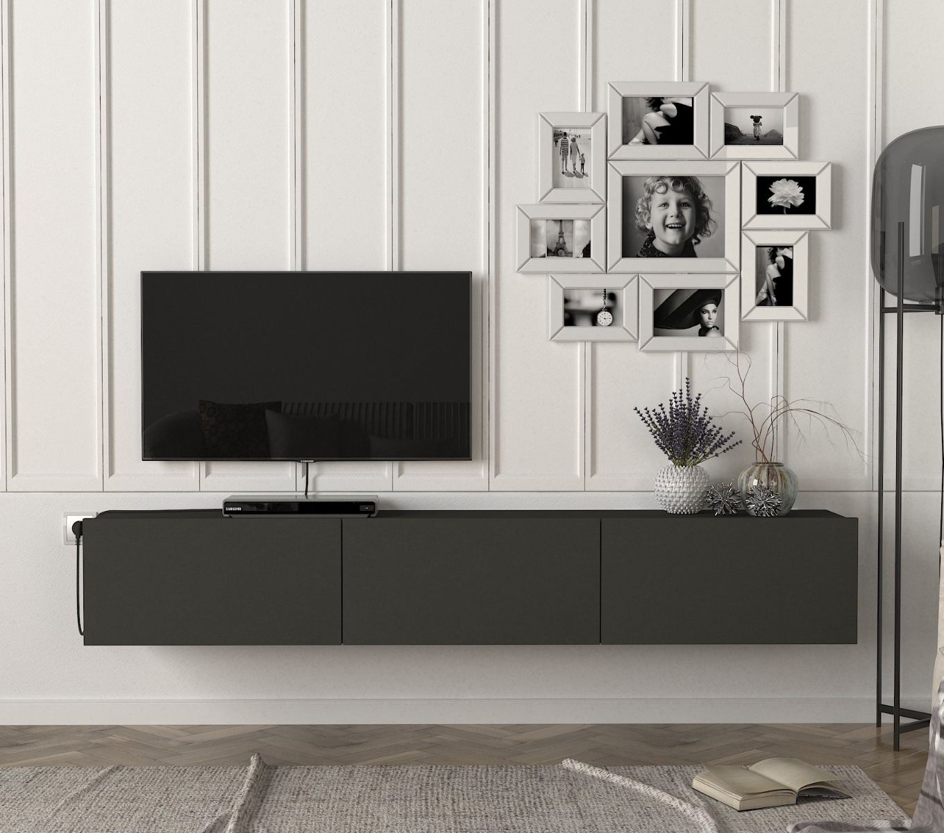 DOMEL TV stolík na stenu, antracit