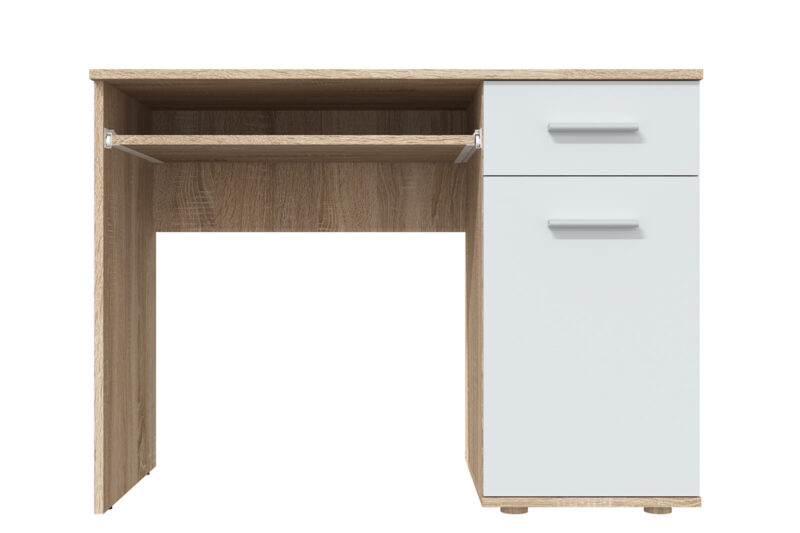 Detský písací stolík DOMINO 2 je tvorený jednou zásuvkou a otváracími dvierkami, za ktorými sa nachádza jedna polica.Disponuje aj výsuvom na klávesnicu. Tento praktický písací stôl pochádza z kolekcie detskej izby DOMINO 2, ktorá sa vyznačuje svojou farebnou neutrálnosťou v prevedení dub sonoma a biela a je tak vhodný ako pre chlapca, tak aj pre dievča. Písací stôl je vyrobený z kvalitného lamina.Rozmery stolíka: (š/v/h) 104,1 x 76 x 50,1 cm.Možnosť dokúpenia ďalších prvkov (viď. Príslušenstvo).Dodávame v demonte.