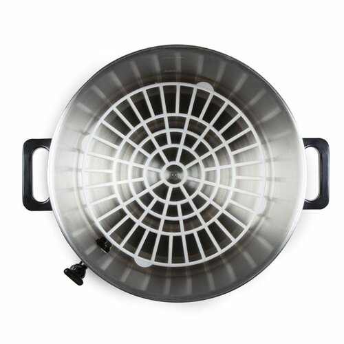 výpustný kohút umiestnený na boku hrnca s vyberateľnou záslepkou pre univerzálne použitie hrnca: zavárací automat, várnica na čaj a stáčanie vareného vína