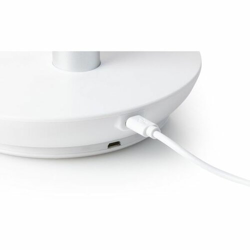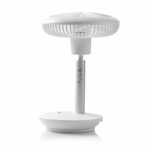 Stolný USB ventilátor v čisto bielej farbe s možnosťou použitia aj bez kábla vďaka vstavanému dobíjaciemu akumulátoru skvele využijete nielen doma, ale napríklad aj na cestách v aute. Ak nemáte radi prievan z vetráčika ventilátora, ale chcete si spríjemniť klímu na svojom pracovnom mieste, môžete ľahko nastaviť ventilátor na fúkanie priamo do stropu a zlepšiť tak cirkuláciu chladného vzduchu vo vašej blízkosti.Rýchlosť fúkania je až 4,2 m/s. Doba nabíjania do plnej kapacity je zhruba 7 hodín. Výdrž akumulátora pri plnom nabití je až 15 hodín. Rýchlosť fúkania je možné nastaviť v 4 úrovniach.Súčasťou balenia je samostatná stabilná dobíjacia základňa a USB kábel v bielej farbe (USB-A do USB-B).