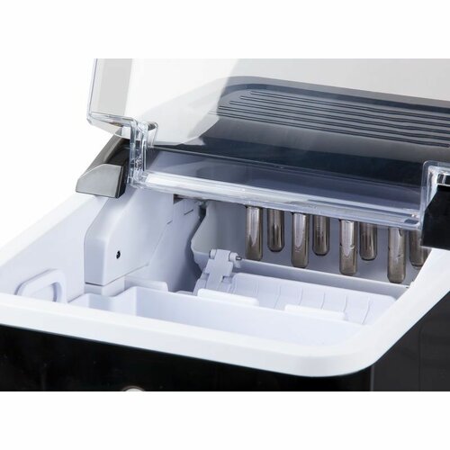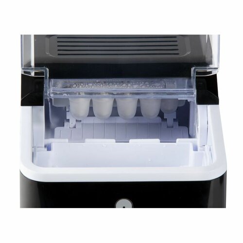 Výkoný výrobník ľadu vyvedený v čiernej farbe disponujúci vlastným kompresorom s výkonom až 12 kg ľadových kociek za 24 hodín. Okrem kompaktného minimalistického dizajnu poteší aj tichou prevádzkou a dlhým prívodným káblom. Výrobník ľadu tak nebude problém umiestniť takmer kamkoľvek v kuchyni na denné používanie. Výrobník dokáže každých 8 minút vytvoriť 9 kociek ľadu. Prístroj za vás stráži množstvo vody aj množstvo vytvorených ľadových kociek a vždy vás upozorní na prázdny zásobník vody, alebo plný zásobník ľadu a automaticky sa vypne. Vďaka priehľadnému veku máte nad výrobou ľadových kociek plnú kontrolu bez toho, aby ste museli prístroj otvárať. Obsluha prístroja je veľmi jednoduchá a stačí vám na to jedno tlačidlo.