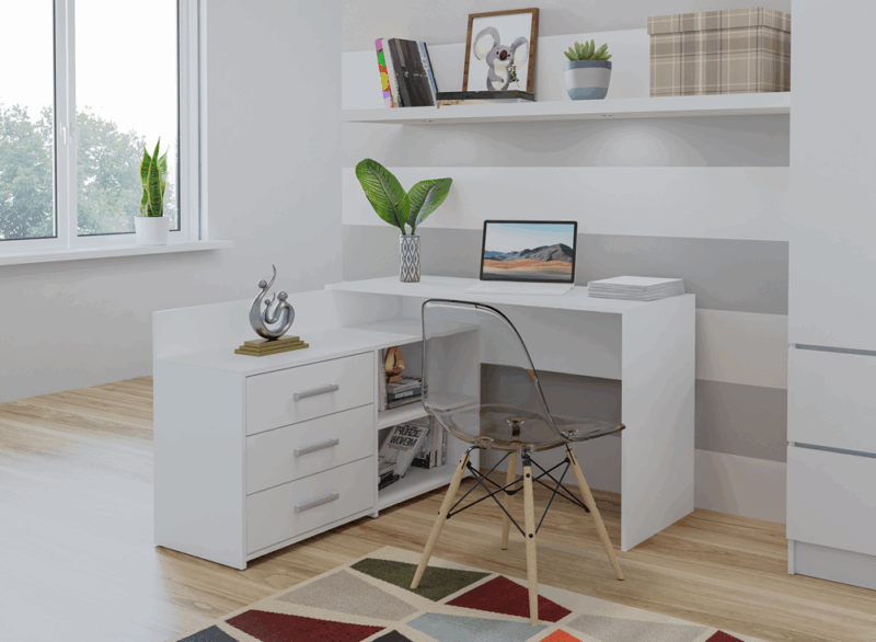 Domovská stránka » Katalóg » DONALD rohový písací stôl s komodou, biela