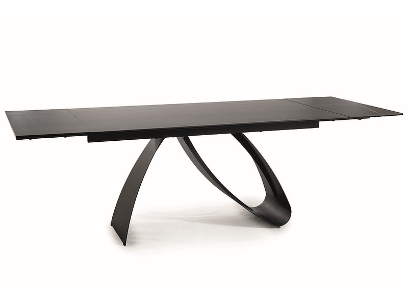 Jedálenský stôl je v štýlovom prevedení. Je vhodný do moderných typov interiérov.Konštrukcia stola je vyrobená z kovu v čiernej farbe. Doska stola je vyrobená v kombinácii skla a talianskej keramiky SAHARA NOIR. Farebné prevedenie: čierna matná.Stôl je vhodný pre 10 osôb, hodí sa do kuchyne či jedálne.Rozmery (š,v,h): 160/240 x 76 x 90 cm.Plocha po rozložení: 240 x 90 cm.Dodávané v demontovanom stave.