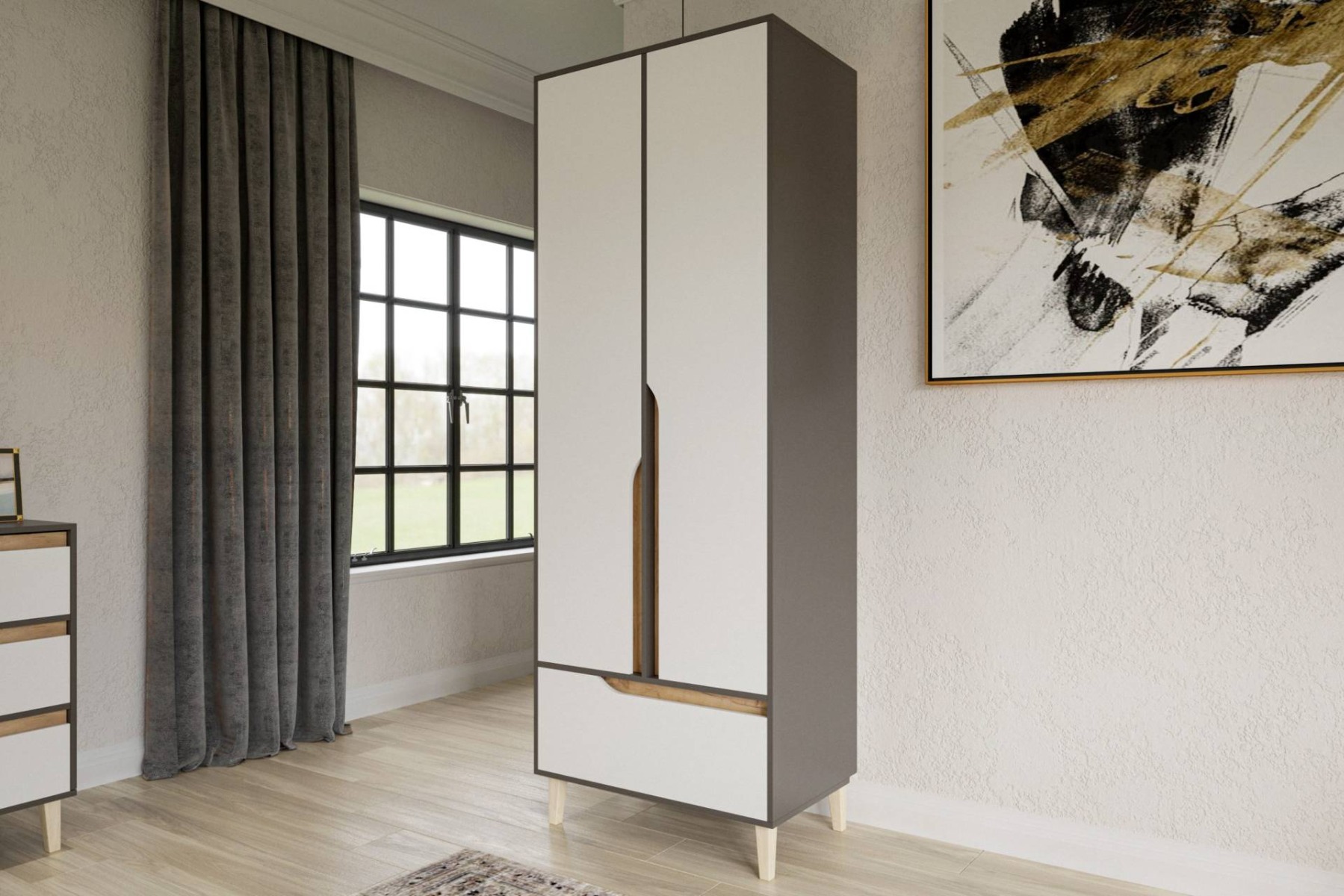 Kolekcia nábytku DOOWE sa vyznačuje pohodlným a spoľahlivým nábytkom do spálne, obývačky či študentskej izby. Nábytok zo sektoru DOOWE je vyrobený z kvalitného LTD materiálu, je doplnený o drevené nožičky L-150 mm, frézované rukoväte a má hladkú povrchovú úpravu, ktorá je jednoduchá na údržbu.Šatníková skriňa DOOWE NO2 ponúka bohatý úložný priestor v podobe praktickej zásuvky, políc za dvierkami a šatníkovej tyče. Je ideálna do študentských izieb, obývačky alebo spálne. Rozmery: (Š/V/H) 80 x 220 x 50 cm.Farebné prevedenie: korpus: šedý antracit / dub Craft zlatýdvierka: biela nymphea albaNábytok dodávame v demonte s prehľadným návodom na montáž.
