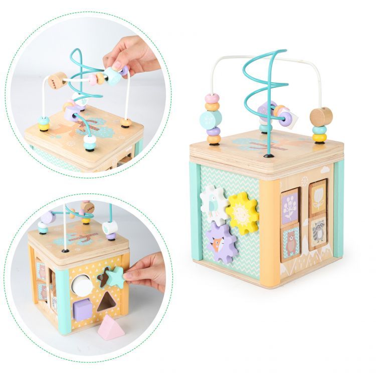 Drevená edukačná kocka – multifunkčná motorická hračka