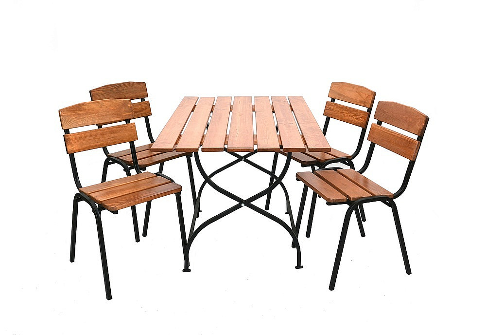 Sestava obsahuje: 4x Drevené záhradné stohovateľné kreslo LIMA, 1x Drevený záhradný stôl LIMA