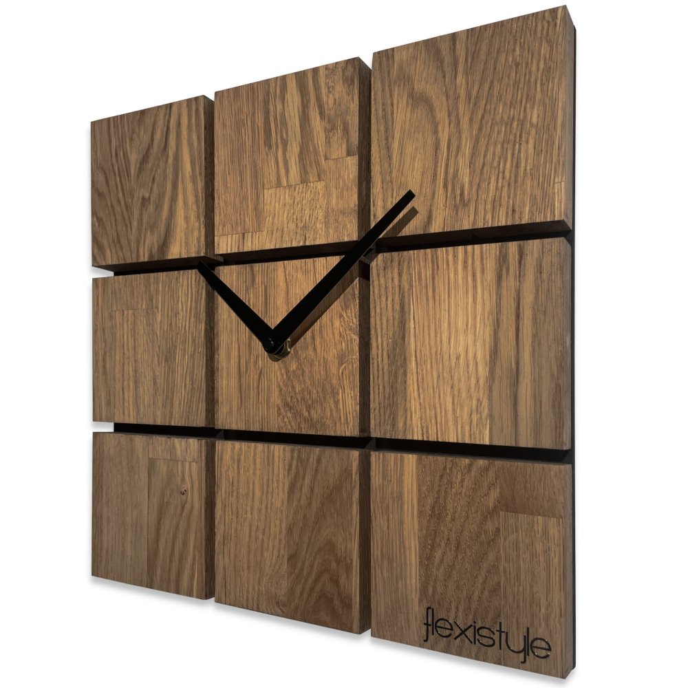Originálna dekorácia na stenu v tvare štvorca. Prelamované nástenné hodiny s rímskymi číslicami s drevenými ručičkami. Vďaka kompaktným rozmerom sa hodiny zmestia aj na malú stenu. Dokonale ozdobia malú obývačku, hosťovskú izbu alebo spálňu. Precízny mechanizmus vám umožní nikdy nikam nemeškať. Vďaka tichému chodu sú hodiny obľúbenou voľbou do spálne. Módna dekorácia do krásnych interiérov.