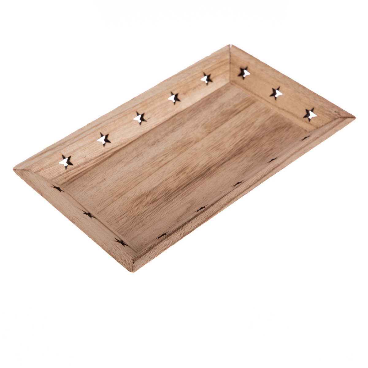 Drevený podnos s decentnými výrezmi v tvare hviezdičiek v prírodnom prevedení nájde svoje uplatnenie v každej domácnosti, vďaka svojej rozmanitosti použitia. Drevený podnos skvele poslúži ako tácka na servírovanie pochutín či nápojov. Každé posedenie s rodinou či priateľmi uvitá praktický doplnok v podobe podnosu, ktorý ochráni povrch vášho stola pred prípadným znečistením.Podnos je možné skvele využiť aj ako základ pre dekoračné kompozície a ako podtácku pod sviečky, vďaka čomu bude opäť chránený povrch stola a váš interiér očarí vami vytvorenou dekoráciou každého hosťa.
