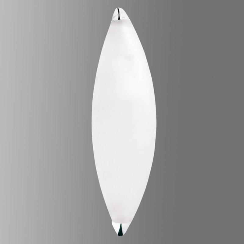 Podlhovastá sklenená nástenná lampa Drop s oxidovanými držiakmi Nástenná lampa Drop zo skla s dĺžkou 27,5 cm má na zúžených koncoch kovové držiaky s oxidovaným povrchom. Saténové sklo tienidla poskytuje neoslňujúce a rovnomerné osvetlenie, ktoré je navyše energeticky úsporné vďaka možnosti namontovať LED alebo úsporné žiarovky.