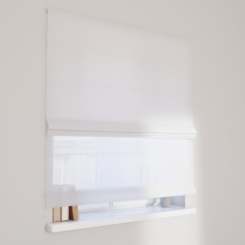 Rímska roleta Duo kombinuje funkciu závesu a záclony.Má dva mechanizmy na vyťahovanie rolety, pre vrchnú(dekoračná) látku na pravej strane a pre záclonu- (voal)na ľavej strane. Kanály sa nachádzajú v prednej časti žalúzie*.