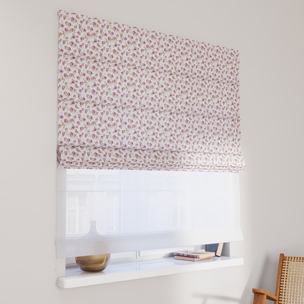 DUO Rímska roleta, biela – ružová, Flowers, 143-95