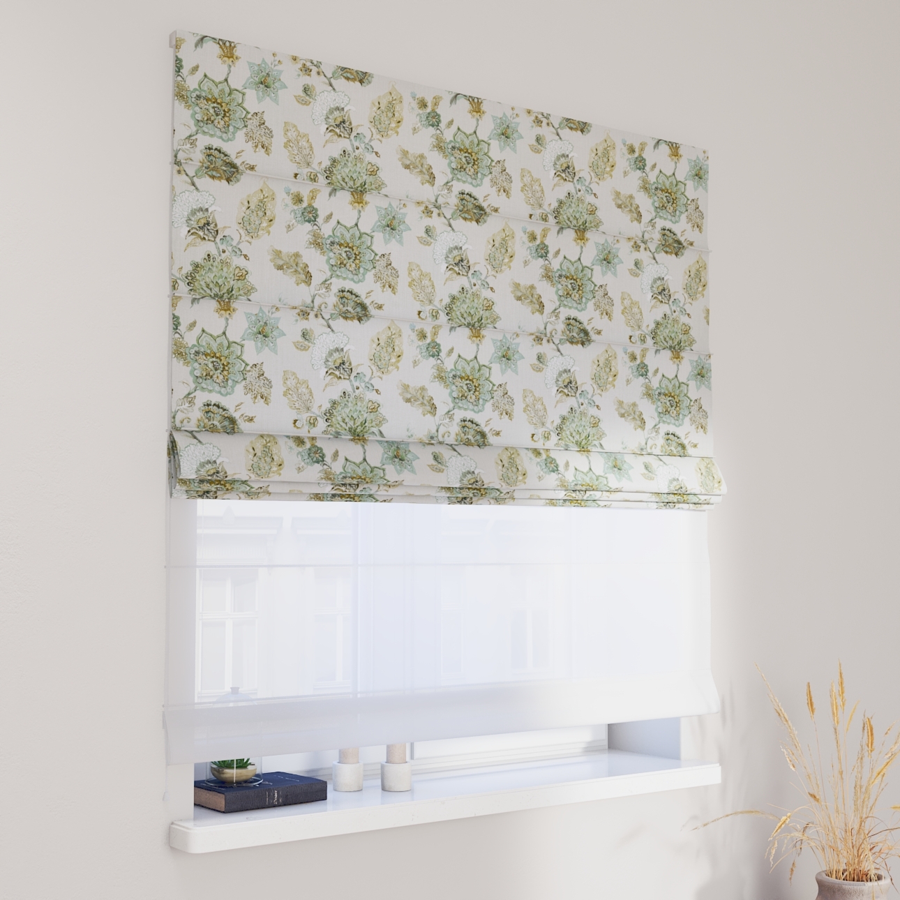 DUO Rímska roleta, kvety na béžovo – sivom podklade, Flowers, 143-67