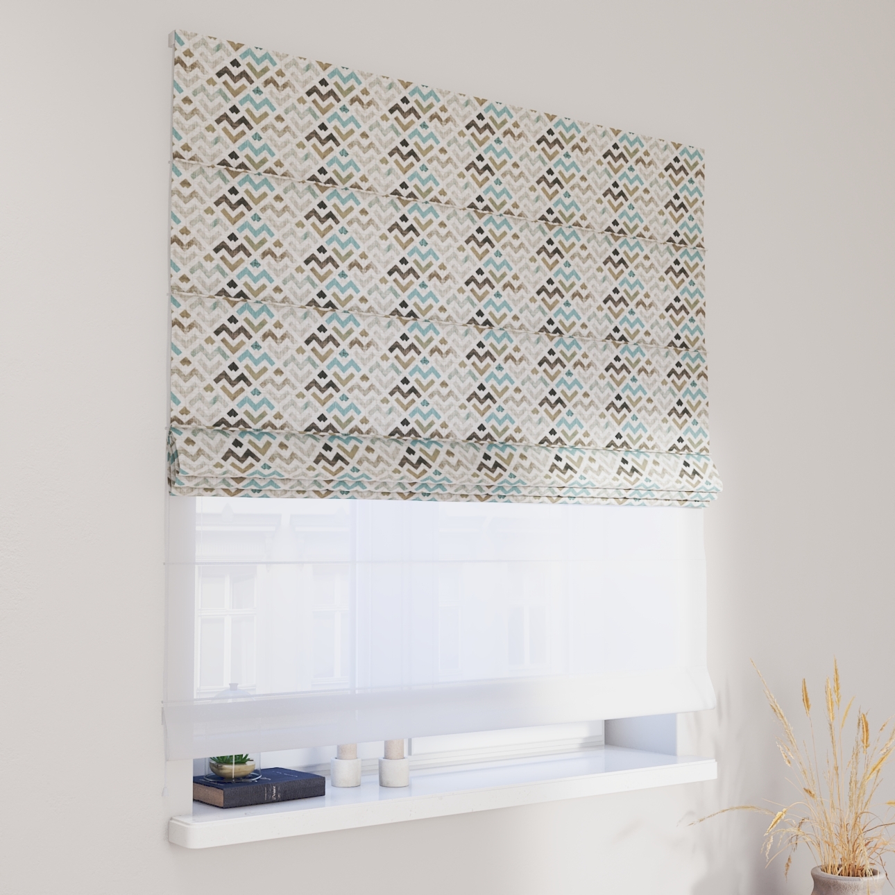 Rímska roleta Duo kombinuje funkciu závesu a záclony.Má dva mechanizmy na vyťahovanie rolety, pre vrchnú(dekoračná) látku na pravej strane a pre záclonu- (voal)na ľavej strane. Kanály sa nachádzajú v prednej časti žalúzie*.