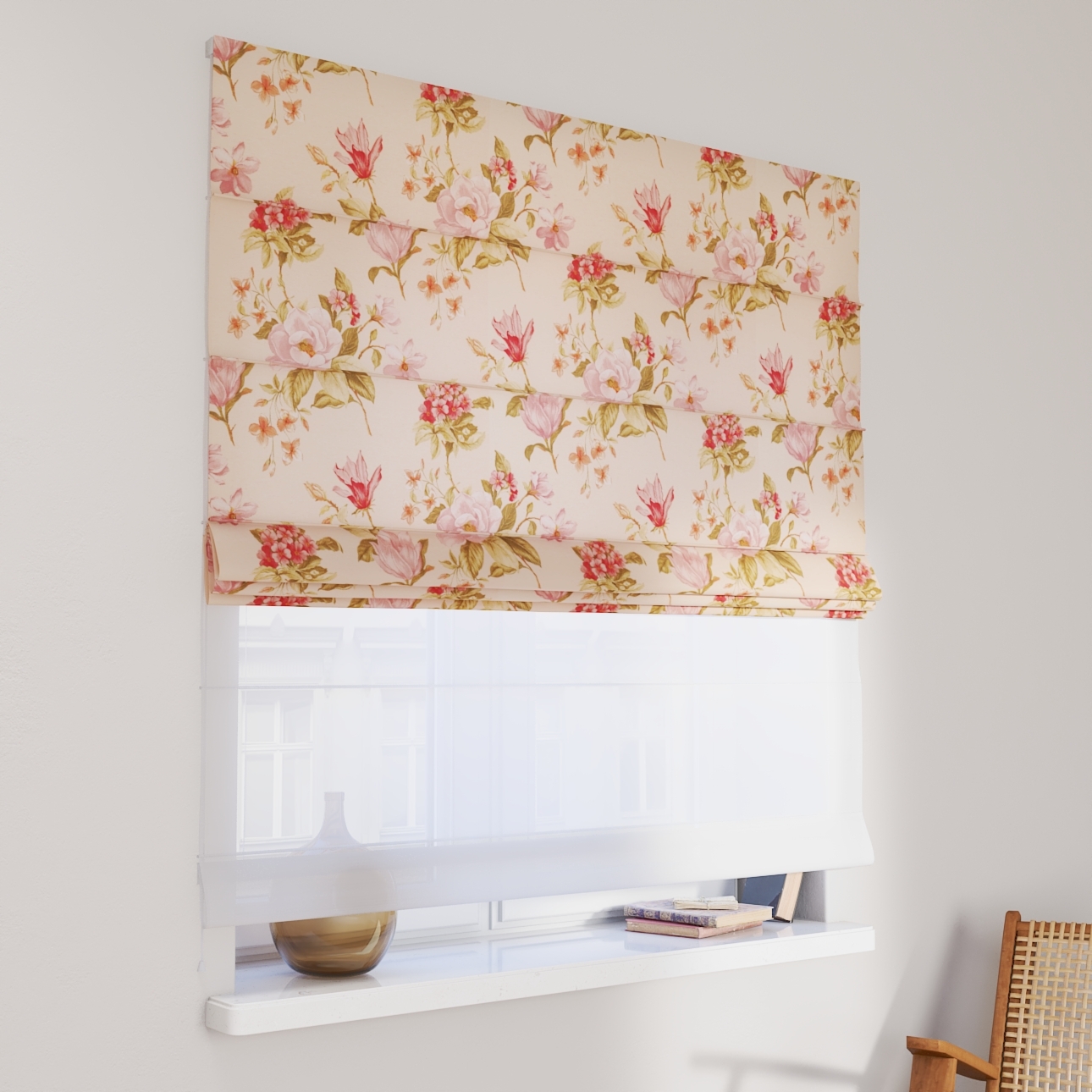 DUO Rímska roleta, výrazný vzor ružovozelené kvety na ľanovom podklade , Londres, 143-87