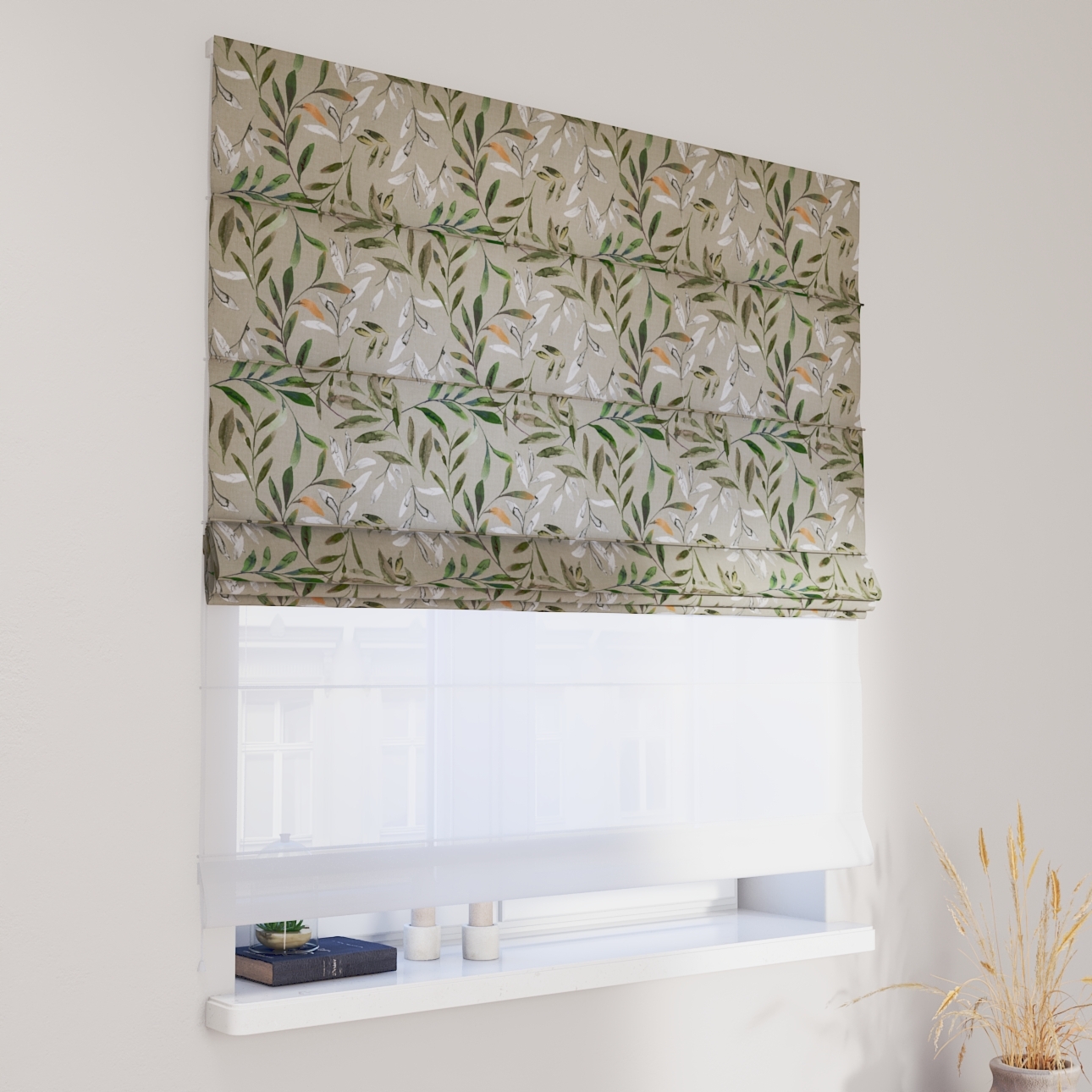 DUO Rímska roleta, zelené vetvy na sivom pozadí, Eden, 144-23