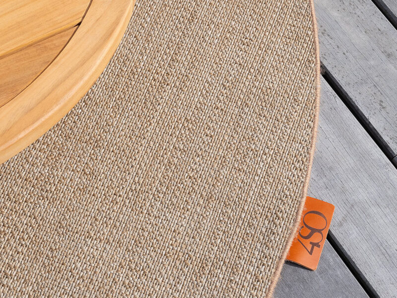Okrúhly koberec Dust do exteriéru s priemerom 150 cm dodá vašej terase teplý a útulný nádych. Odolný, ľahko udržiavateľný a ideálny pod sedenie.