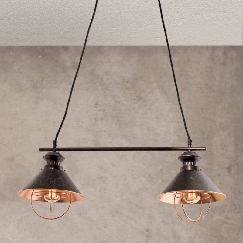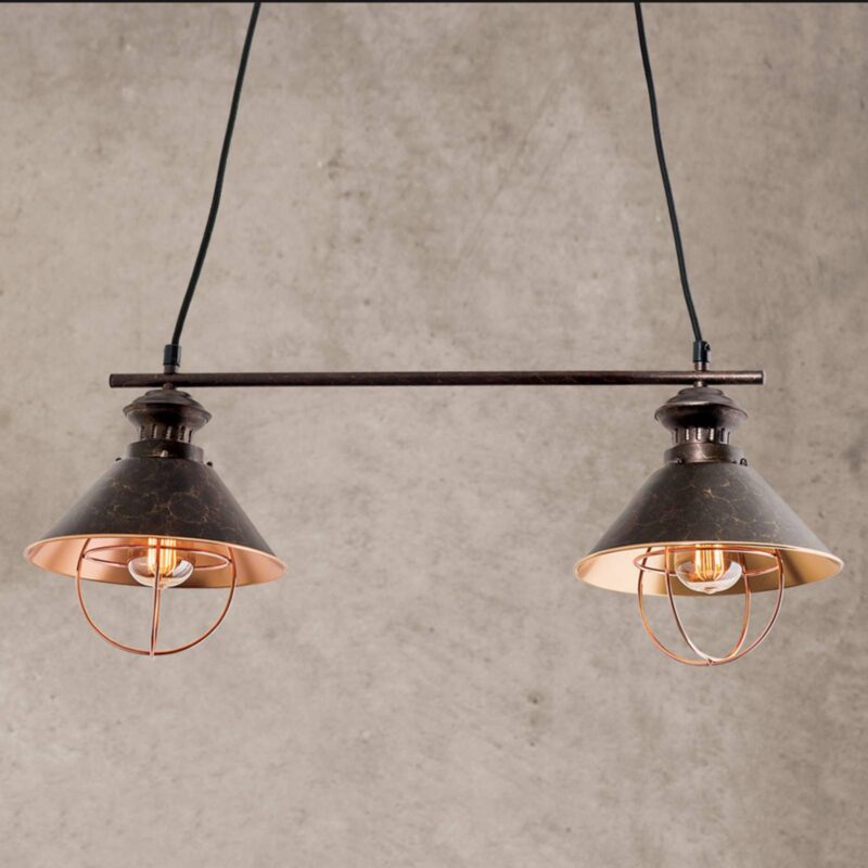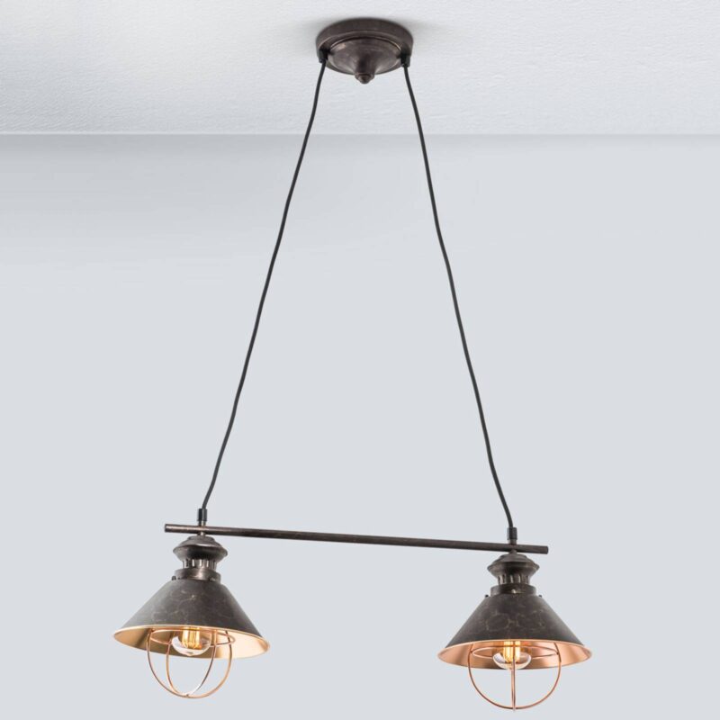 Dvoj-plameňová závesná lampa Shanta, čierna meď