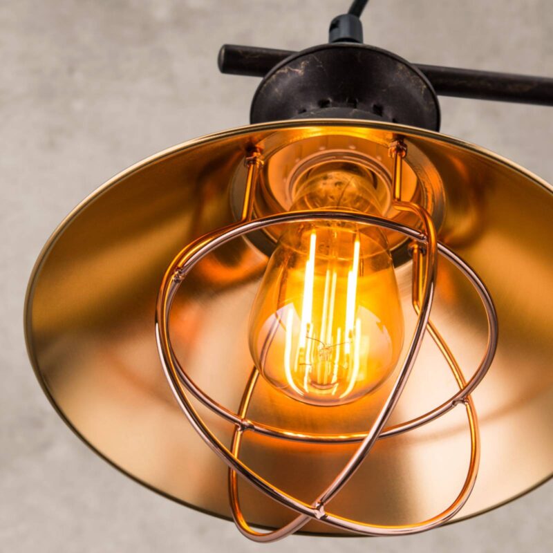 Závesné svietidlo Shanta s rustikálnym vzhľadom, vybavené dvom klietkovými tienidlami Závesné svietidlo Shanta s rozperou dokáže svojimi dvoma žiarovkami v dvoch tienidlách vytvoriť primerané osvetlenie, napr. nad jedálenským stolom. Zvlášť dobre zapadá vďaka svojmu rustikálnemu dizajnu do obytných priestorov zariadených vo vintage štýle. Obe kovové tienidlá majú vonkajšiu stranu vo farbe čiernej medi a v ich vnútri je lesklá meď. Žiarovky, ktoré by mali byť vo vintage štýle, sú obklopené istým druhom klietky – rovnako lesklej medenej farby. Dĺžka kábla sa dá počas inštalácie skrátiť.
