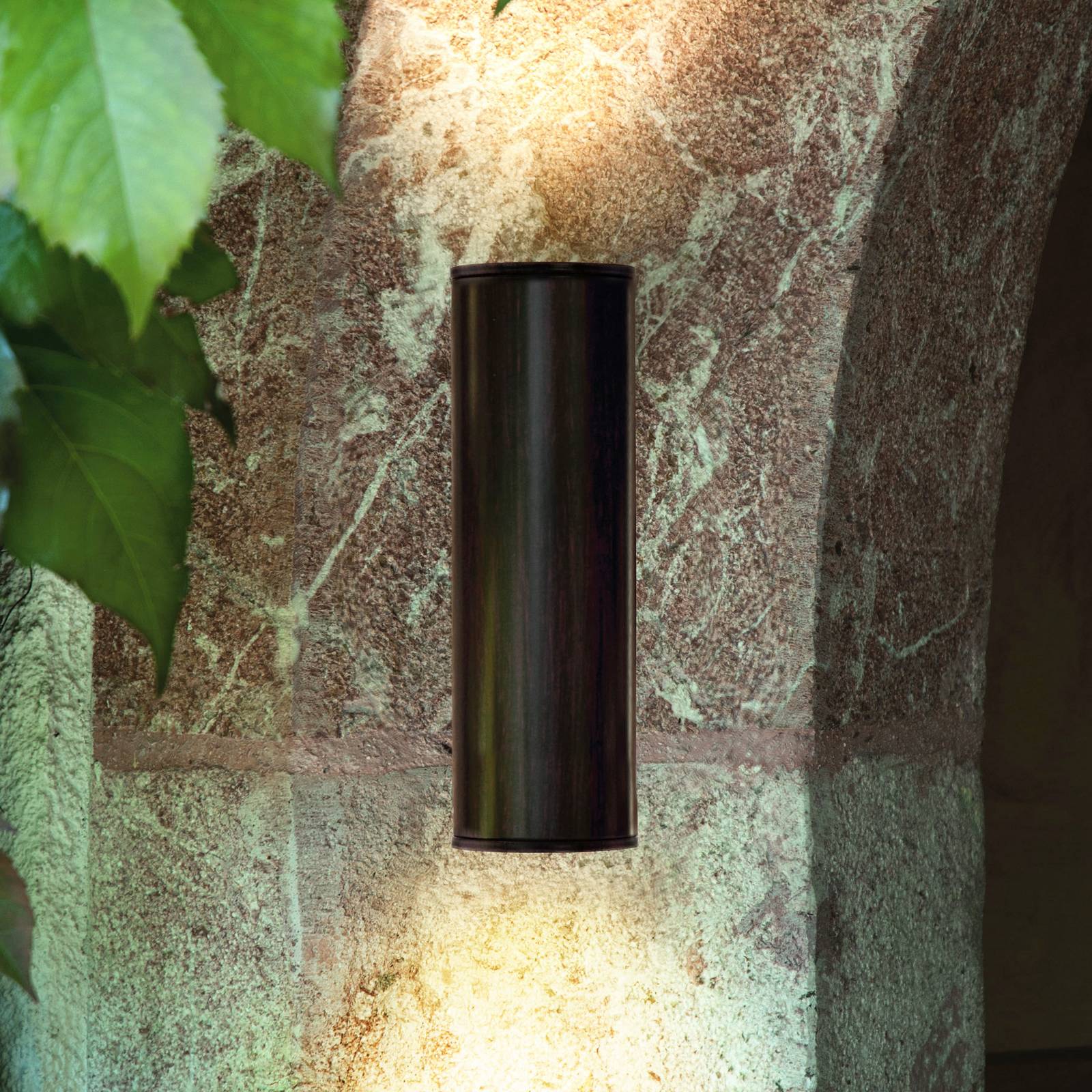 Šetrí energiu, no napriek tomu je mimoriadne jasné: LED exteriérové nástenné svietidlo Riga Toto exteriérové nástenné svietidlo vybavené energeticky úspornou LED svetelnou technológiou je ako stvorené na jedinečné stvárnenie fasády domu. Vďaka svojmu valcovému tvaru a koncovej povrchovej úprave v starožitnej hnedej farbe bude toto svietidlo pekným dekoratívnym osvetľovacím prvkom napríklad na balkóne alebo terase. Svetlo pritom z osvetľovacieho telesa vyžarujú dve vertikálne GU10 LED žiarovky, čo spôsobuje, že vzniká krásne osvetlenie steny.