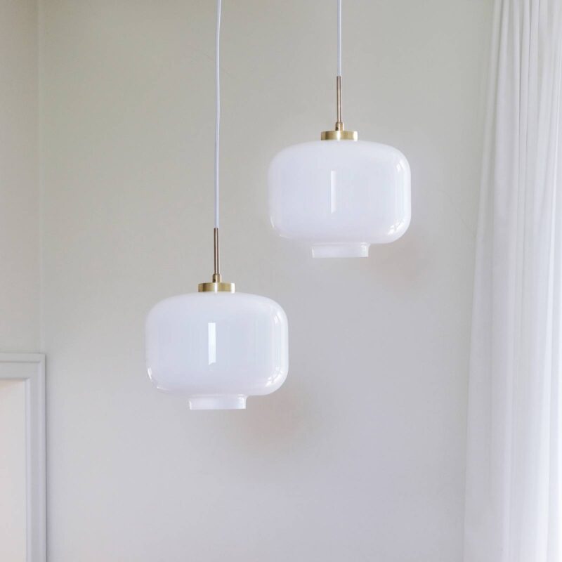 Štýlová závesná lampa Arp so skleneným tienidlom Takmer úplne uzavreté tienidlo z bieleho skla zaručuje neoslňujúce a jemne rozptýlené svetlo závesného svietidla Arp. Lampa má ušľachtilý a predovšetkým puristický dizajn, ktorý dokonale dotvára textilom potiahnutý kábel. Spoločnosť Arp môže zabezpečiť správne všeobecné osvetlenie v obývacej izbe, jedálni alebo kuchyni. Arp je svietidlo zo sortimentu dánskej spoločnosti Dyberg Larsen, ktorú v roku 2016 založil Thomas Dyberg-Larsen a ktorá sa venuje vývoju a výrobe pevných, odolných a zároveň cenovo dostupných svietidiel v škandinávskom štýle.
