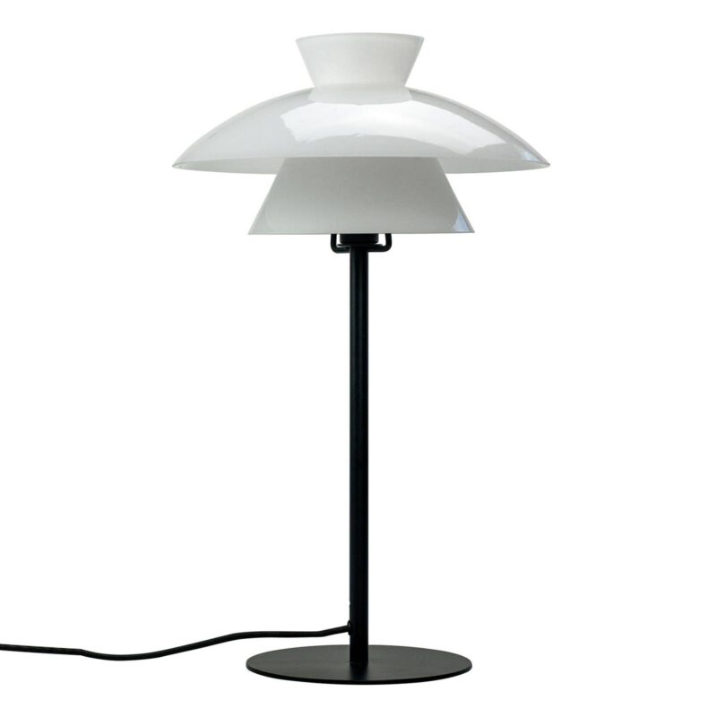 Stolová lampa Valby s krásnym skleneným tienidlom z troch častí Stolová lampa Valby upúta pozornosť svojím špeciálne navrhnutým tienidlom z troch prvkov z opálovo bieleho skla. V hornej a dolnej časti bol umiestnený kónický prvok, ktorého stred tvorí zakrivený široký tienidlo. Tento dizajn v škandinávskom štýle vyzerá moderne a zároveň je nadčasový. Rám a podstavec lampy sú veľmi jednoducho vyrobené z matného čierneho lakovaného kovu, takže v centre pozornosti lampy je krásne tienidlo. Spínač je integrovaný v prívodnom kábli. Valby je stolová lampa od dánskej spoločnosti Dyberg Larsen. Spoločnosť so sídlom na ostrove Funen vyvíja a vyrába svietidlá s prevažne škandinávskym dizajnom za prijateľné ceny, bez toho, aby obetovala krásny dizajn, špeciálny svetelný efekt a dobrú kvalitu.