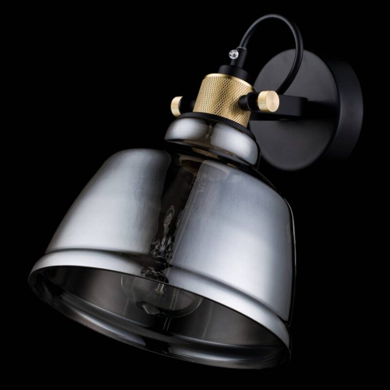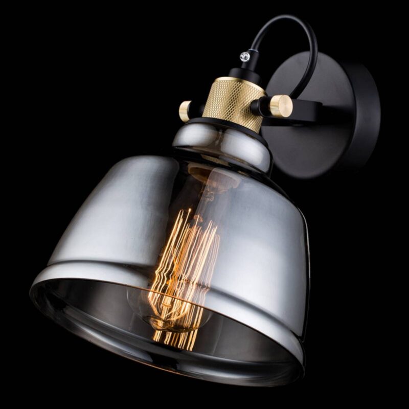 Nastaviteľná nástenná lampa Irving vo vintage dizajneNie je to len osvetľovací objekt, ale aj zariaďovací prvok, ktorý rozhodujúcim spôsobom formuje štýl bývania, to je nástenná lampa Irving.Skladá sa z okrúhleho nástenného držiaka a krásneho skleneného tienidla v dymovo sivej farbe, ktoré je spojené so stenovou doskou pomocou pevne vyzerajúceho kovového držiaka zlatej farby. Zvláštnosťou je, že tienidlo sa tu dá mierne nakloniť pomocou dvoch aretačných skrutiek v držiaku, takže celé tienidlo sa dá nastaviť podľa potreby. pre dizajn s otvoreným tienidlom je mimoriadne vhodné použitie dekoratívnych žiaroviek, napríklad takzvaných vintage žiaroviek v tvare žiarovky. Ich dizajn nielenže dodáva istý nádych, ale zároveň vyžaruje veľmi útulné svetlo.