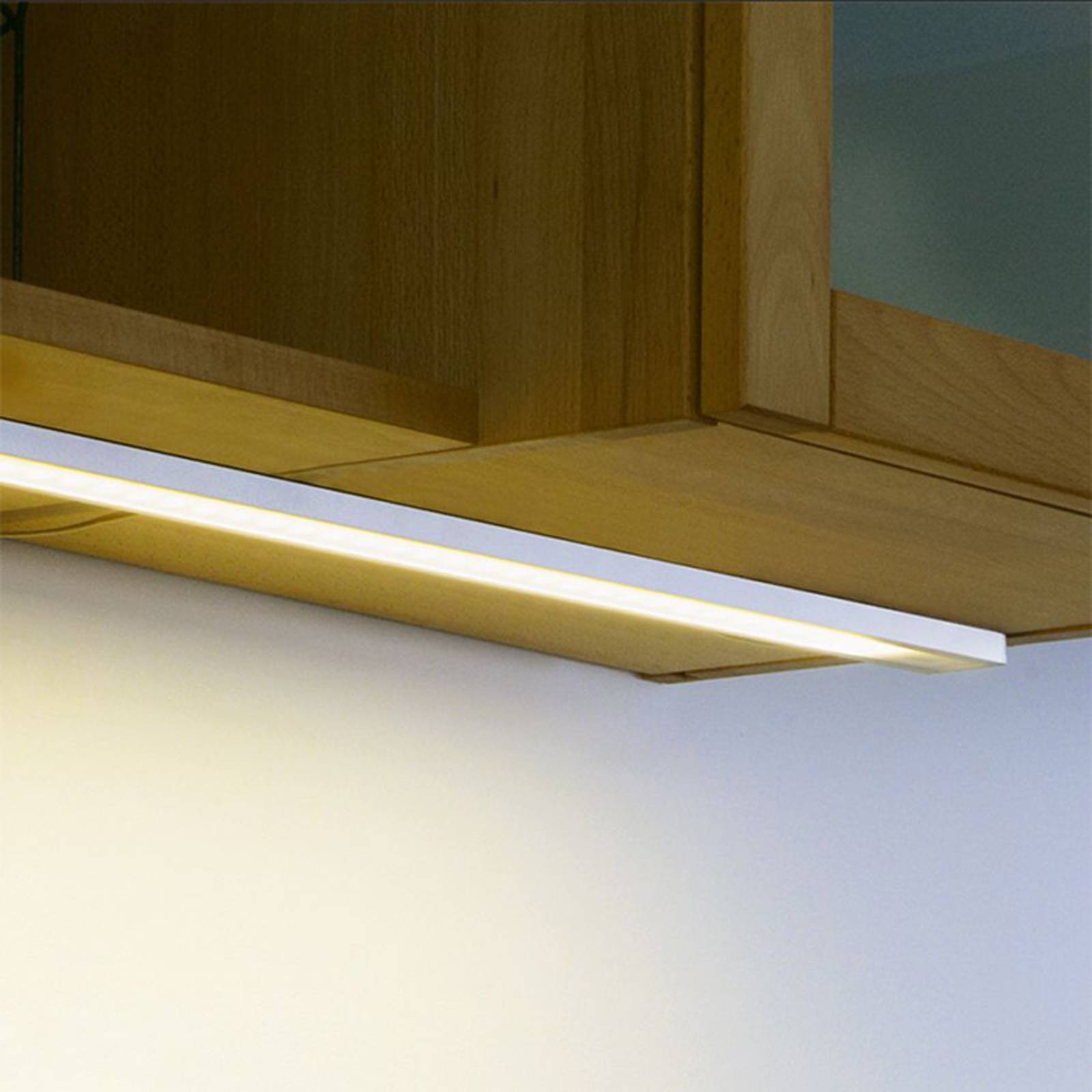 60 cm dlhý Dynamic LED Top-Stick – svetlo do skrinky s nastaviteľnou farba svetla Toto LED svetlo do základnej skrinky Dynamic LED Top-Stick s extrémne dlhou životnosťou 100 mW LED s priemernou životnosťou 30 000 hodín je perfektne vhodné na inštaláciu pod kuchynské nástenné skrinky. Zvláštnosťou tohto farba svetla je nastaviteľná farba svetla – od 2 700 Kelvinov pre útulné osvetlenie pozadia po 6 000 Kelvinov pre prácu. Svietidlo sa dodáva s 2,5 m pripojovacím káblom a 250 cm samolepiacim káblovým vedením (na stredovú montáž). Pre pripojenie je potrebný LED transformátor, obsluhu vykonáva dynamický ovládač (diaľkové ovládanie) – oba je možné objednať v rámci príslušenstva.